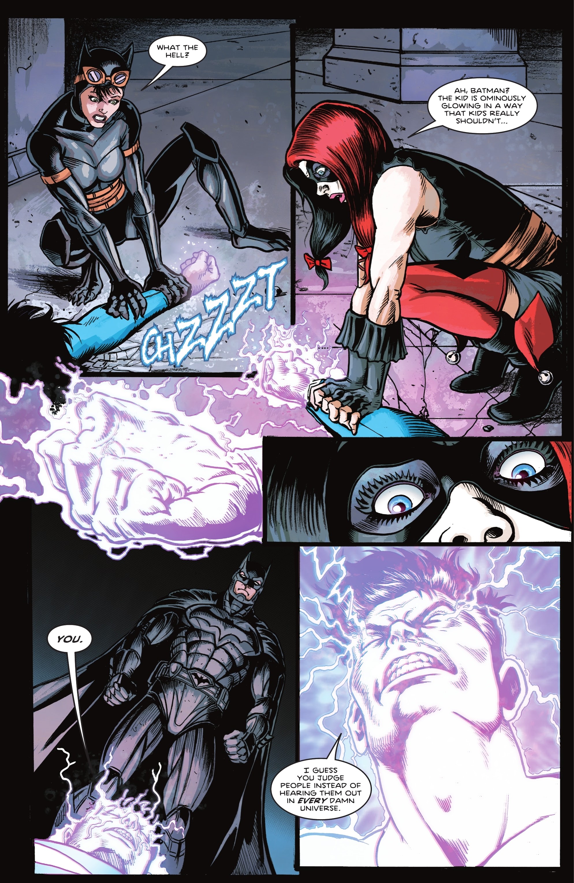 In this issue, Jon meets with the so-called Insurgency—those who oppose the actions of Superman—and learns of their mission to kill Superman. Lex Luthor, a good friend of Batman, brings the Bat the weapon Ultraman had been using to kill Supermen across the multiverse. When Jon confronts Batman, the insurgency unleashes their wrath on him—surprising Jon with their superior strength!